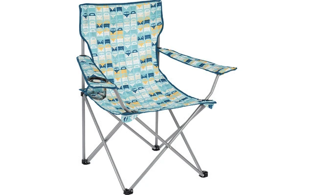 Faltbarer Campingstuhl im kultigen VW Bulli Design. Der Campingstuhl ist besonders langlebig durch seinen robusten Rohr-Stahlrahmen. In einer der beiden Armlehnen ist ein Getränkehalter integriert. Der VW Bulli Stuhl kommt mit einer Tragetasche und ist bis zu 100 kg belastbar.